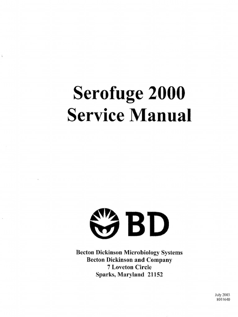 Beckton Dickinson Sero Fuge 2000 Series Operator S Manual Free Download Borrow And Streaming Internet Archive